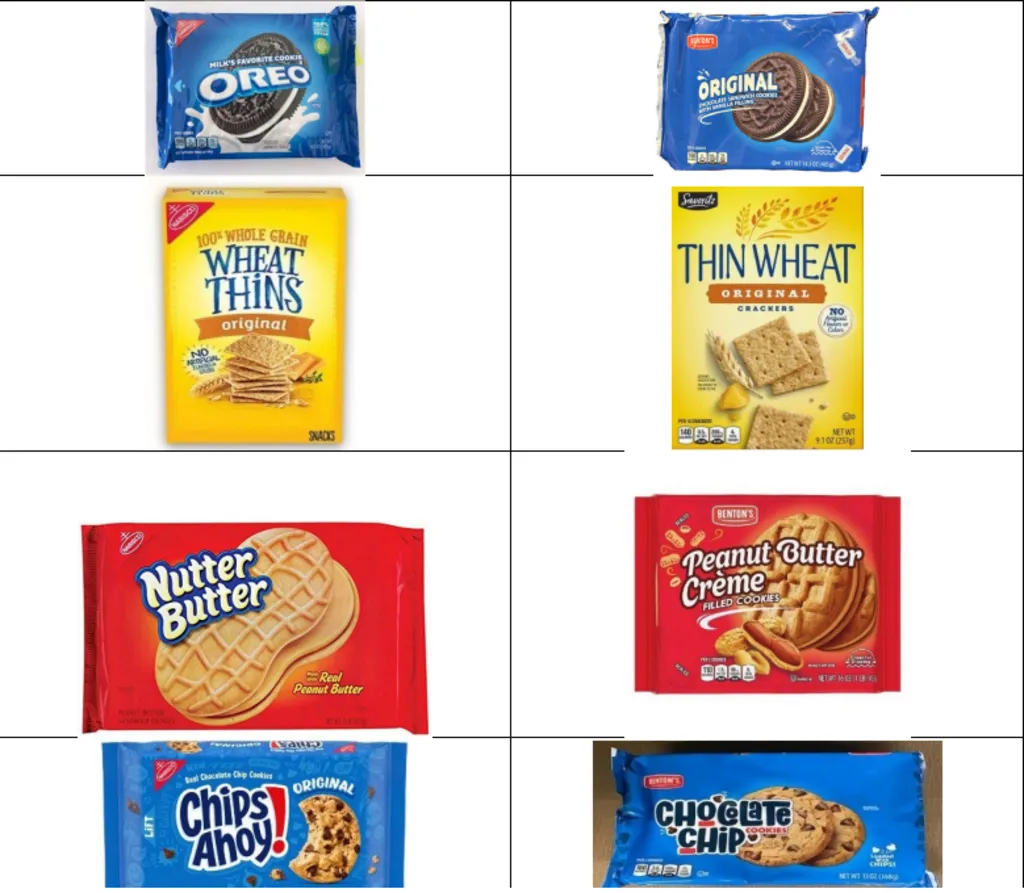 In the lawsuit, Mondelēz displayed side-by-side photos of the alleged “copycats” against its own snack brands, highlighting the similarities in packaging colors, fonts, and symbols. ALDI’s Thin Wheat crackers, for example, come in a gold box very similar to Mondelēz’s Wheat Thins.