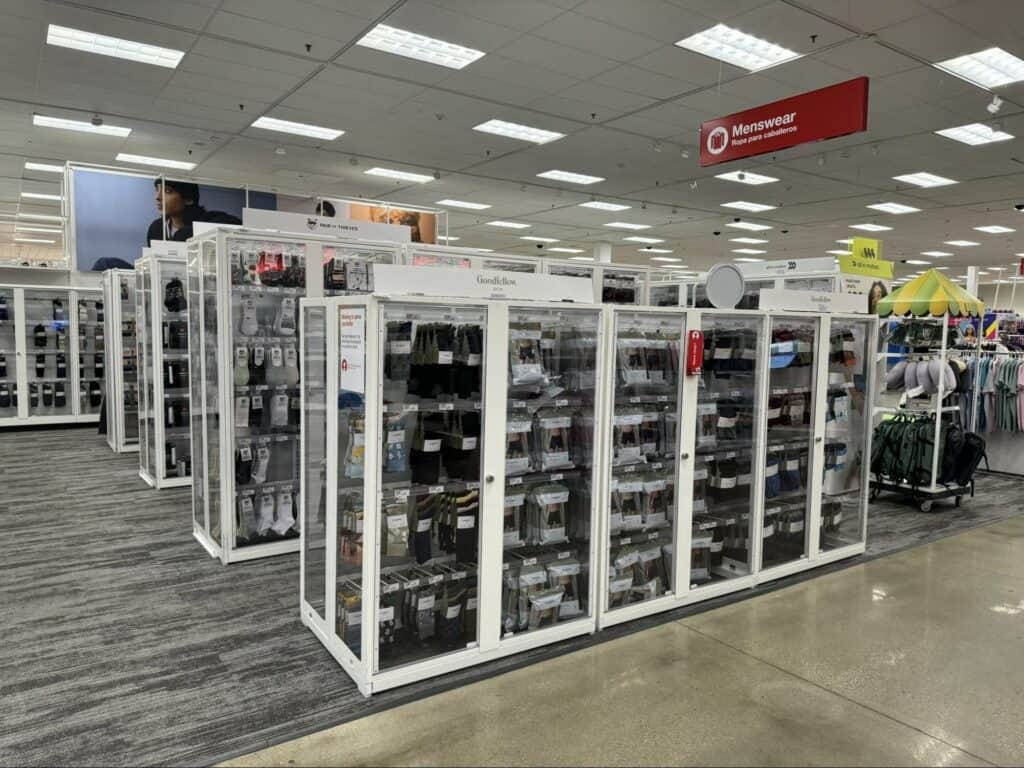 Last year, Target executed nine store closures, noting theft as the main factor. Nordstrom, Whole Foods, Nike, Walgreens, and Rite Aid have all taken similar actions. Locked cases have been installed across several major chains, including Walgreens, Target, and Walmart, to encase basic items ranging from pharmacy or personal care items to apparel and accessories such as socks and underwear.